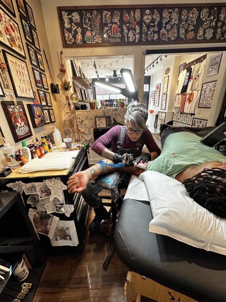 T A T T O O S A S T R O stacyfevinger 🩸Traditional Tattooer 🕸️ Astrologer🩸 Eastern Pass Tattoo📍Philly ✈️ Hampton, VA: 3/6-8 Channeled Art🩸Planetary Devotion Back @treasuretattoo with my friends next Wednesda Gap fillers for @i.like.carrot done @easternpassta Painted up these wedding boots as a bridal party g Florals lately. Flash & freehand. All @easternpass The outtakes are always better? IG/AI wants you to Load More Follow on Instagram